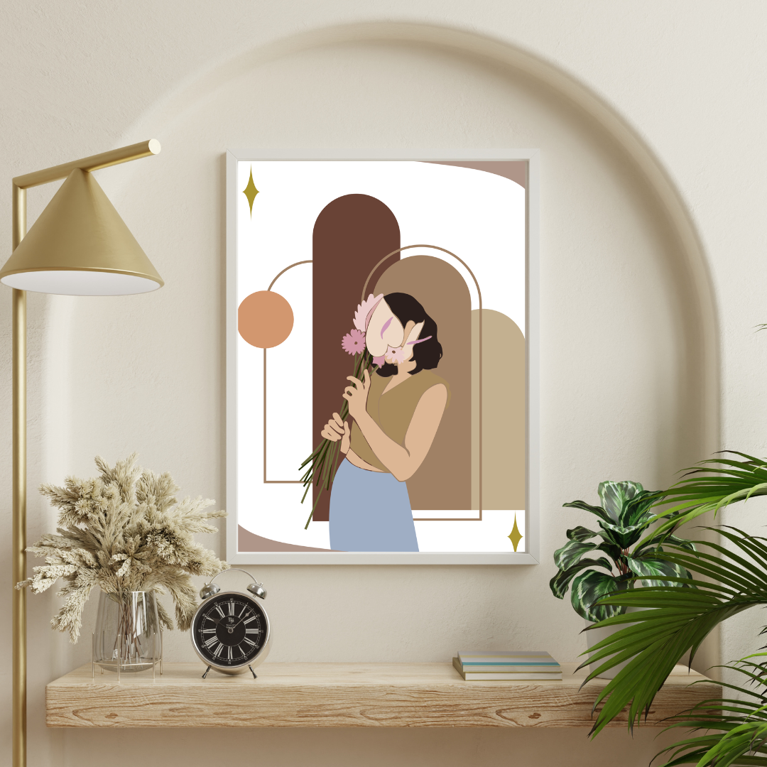 This minimalist boho canvas captures quiet confidence and natural beauty. With warm neutrals, organic arches, and delicate florals, it brings a grounded yet artistic energy into your space.