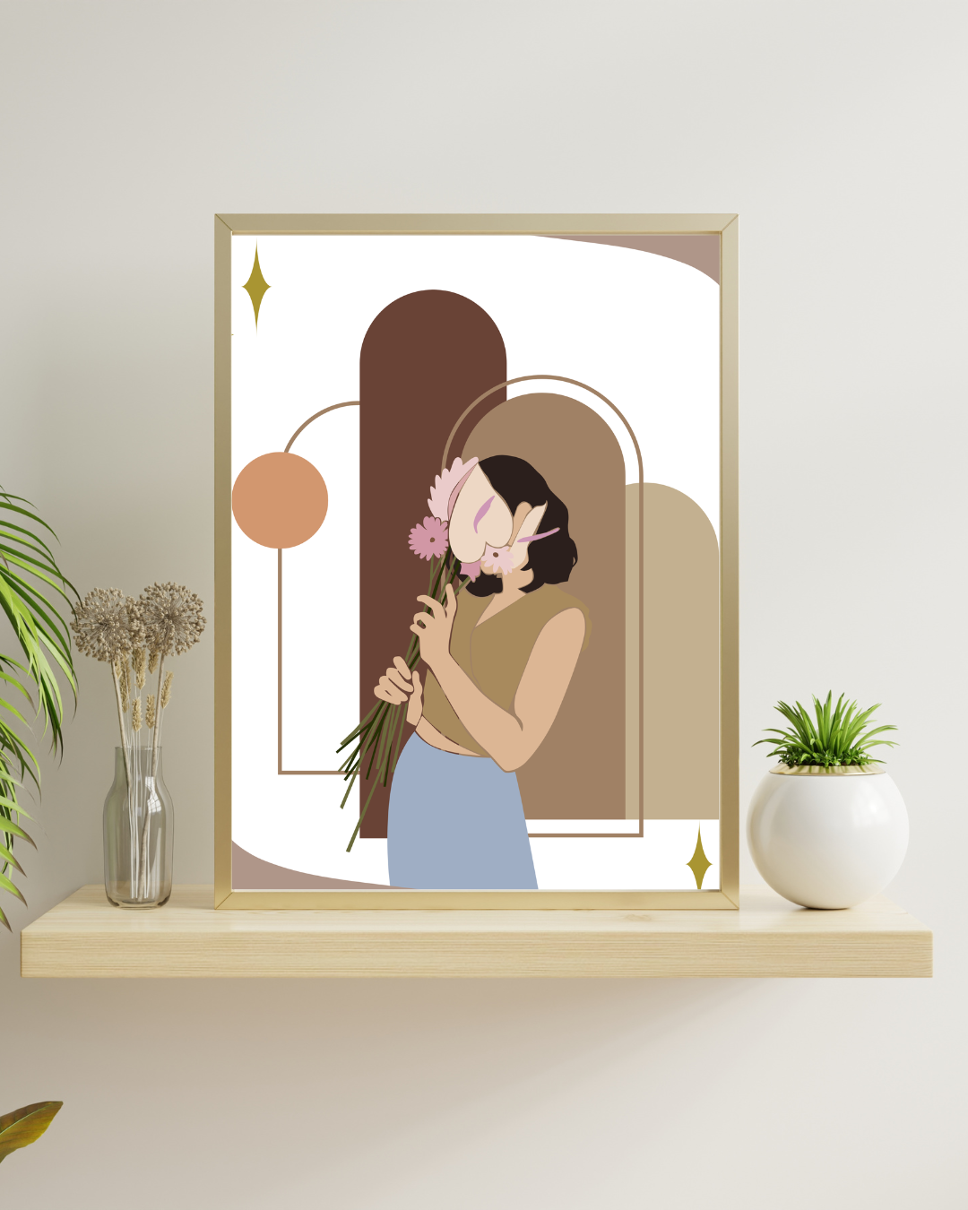 Soft shapes, warm tones, and graceful florals come together in a timeless boho composition—perfect for modern, art-forward interiors.